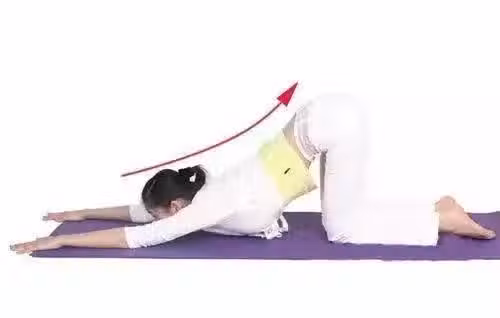 做法:跪著,雙手和上半身儘量貼地,拉伸肩部及整個腰背部脊柱。
