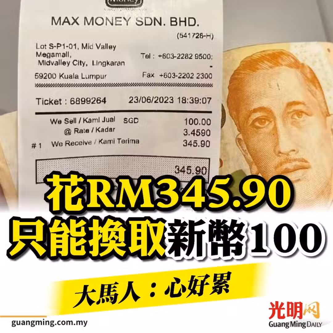 花RM345.90才能換100新幣!大馬人:心好累