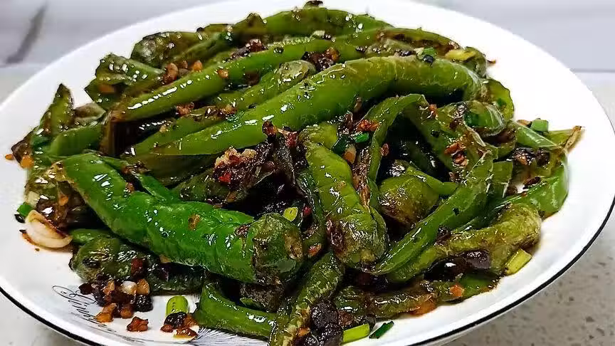 ④這道虎皮青椒,滿滿豆豉香味,青椒香軟入味,咸香爽口,越吃越好吃。