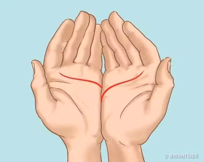 如果你是兩條合起來左手比較高的人(就像上圖那樣),那你其實是個內心堅強且比較外向型的人,這樣的你是很期待來場刻骨銘心的戲劇化愛情的。