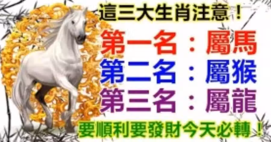 這3大生肖注意!屬馬猴龍要順利要發財今天必轉!