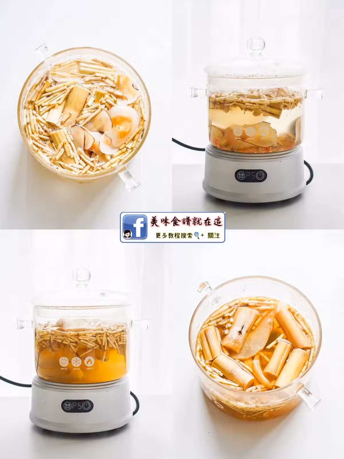將竹蔗、茅根、馬蹄、海底椰等食材入鍋,