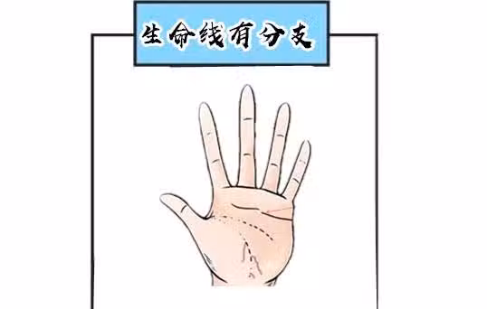 生命線是人手掌紋的三大主線之一,在相學中也叫「地紋」,起於食指指根線與拇指指根線的中點,呈圓弧狀拋物線延伸向腕橫紋。掌管一個人的健康和脾性。若是生命線出現分叉,總有這種手相的男人比較怕事,遇到困難時不會冷靜的思考,就想著退縮或者推卸給其他人,性格的懦弱使他們在事業上也不會有太大的成就,並且從小體弱多病,壽元不足,屬破財之相。