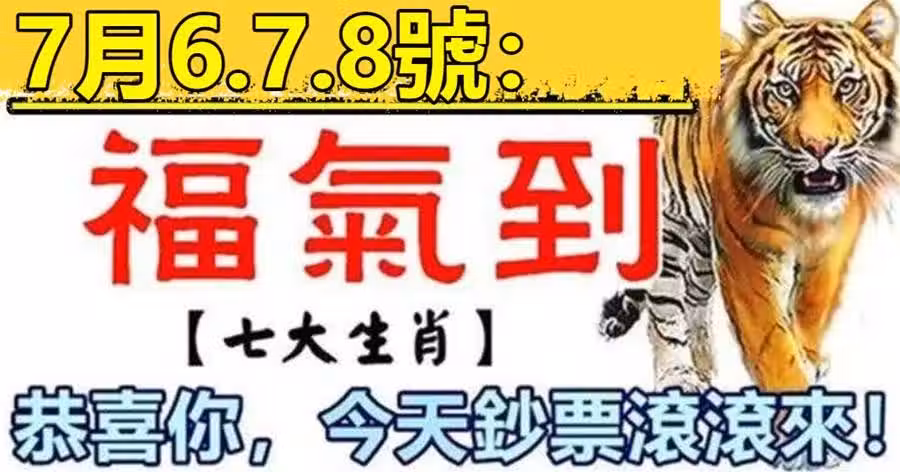 7月6.7.8號:恭喜七生肖,福氣到鈔票滾滾來!