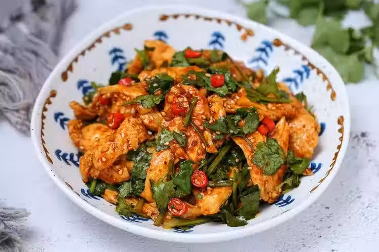 雞胸肉蘸一層澱粉用肉錘敲散可以使口感更嫩滑,燙煮時間不必太久,以免口感過老。調味料根據個人口味添加。