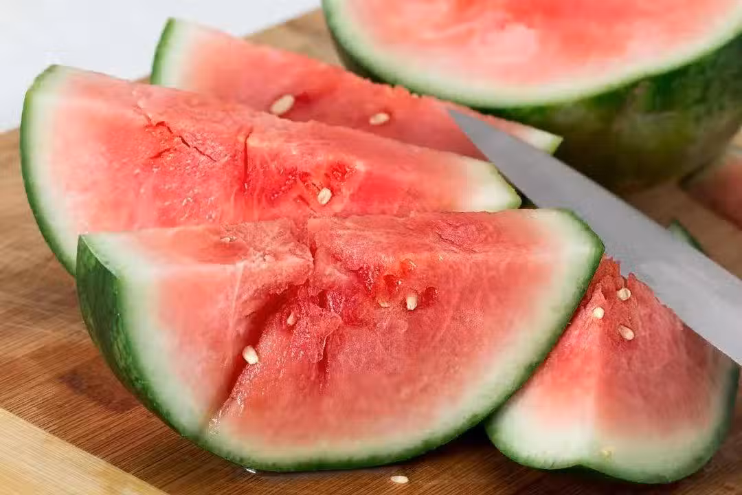 從冰箱裡拿出的西瓜,吃的時候盡量切掉表面的0.5~1厘米厚的部分,這樣更健康安全。