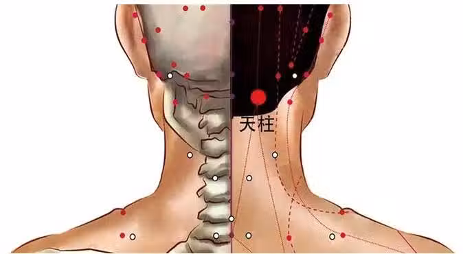 天柱穴的具體位置,在後腦發際線正中旁開2厘米(1.3寸),左右各一個。