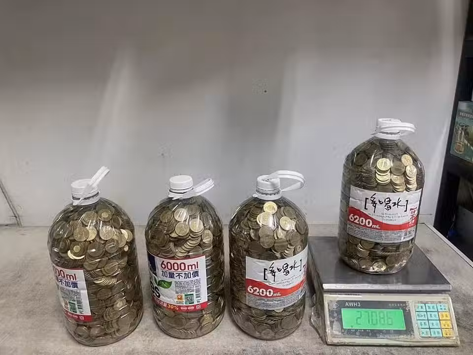 存了4大桶「50元硬幣」重達108公斤!總價值揭曉他驚訝:居然沒半枚是假的