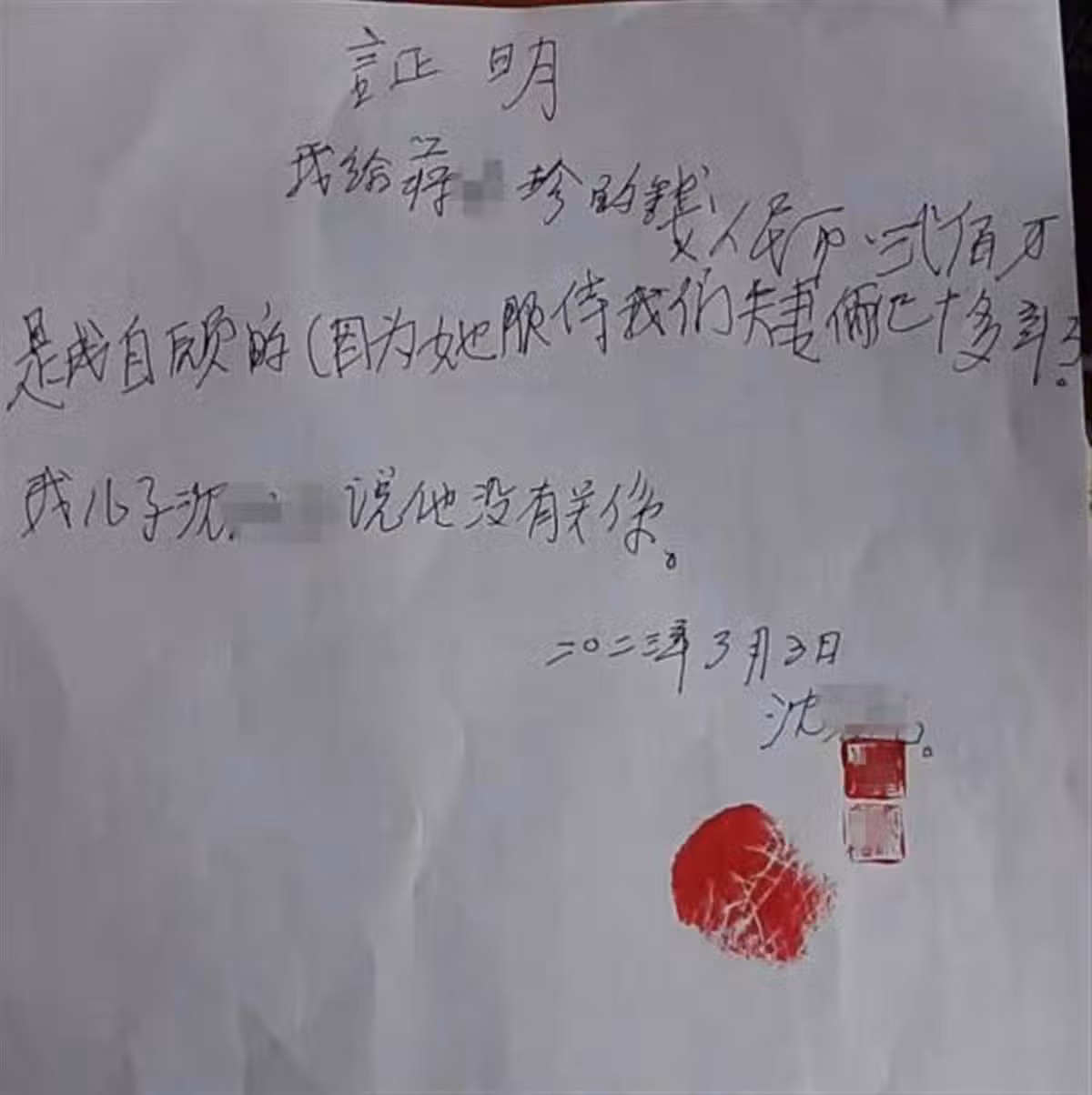 不過保母則聲稱,其中100萬元是她的養老金,100萬元是給她的獎金,另外50多萬元以現金形式取出。而社區工作人員則透露,看護蔣女士已經在5月份被解僱,當時她和老人的兒媳還發生了爭執,目前兩位老人都被兒子兒媳帶去了杭州,並不在家。而事件爆發後,警察已經介入調查,關於蔣女是否虐待老人一事,還需進一步等待核實。