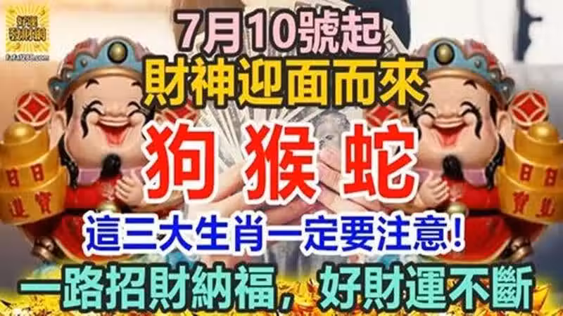 7月10號起財神迎面而來,一路招財納福,好財運不斷的三屬相