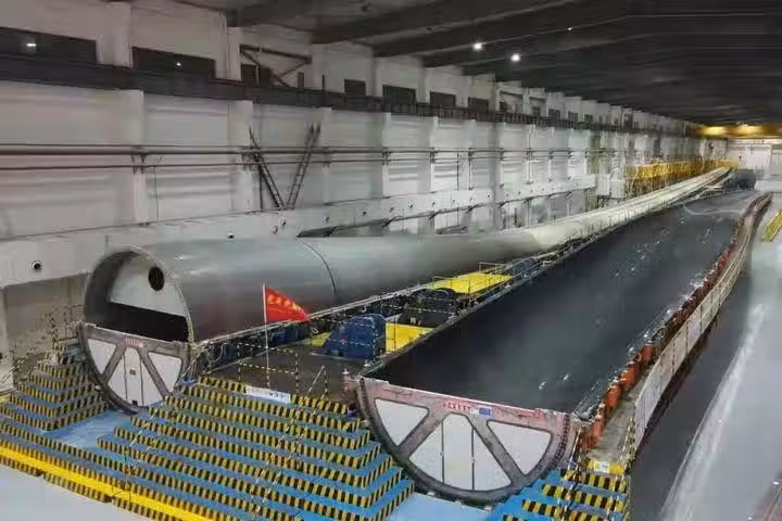 機組葉輪旋轉時直徑可達252米,葉片的掃風面積達5萬平方米,若覆蓋到地面上就是75畝地,相當於7個標準足球場的面積,很可能比你居住的小區還大不少。