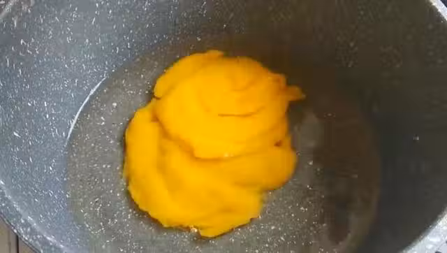 3.重新起一鍋,裡面放入250ml純牛奶,還有30g白砂糖,用小火煮至白砂糖完全融化。這時候再把軟化的10g吉利丁片放進來,繼續攪拌至吉利丁片完全融化,然後盛出來放涼備用。