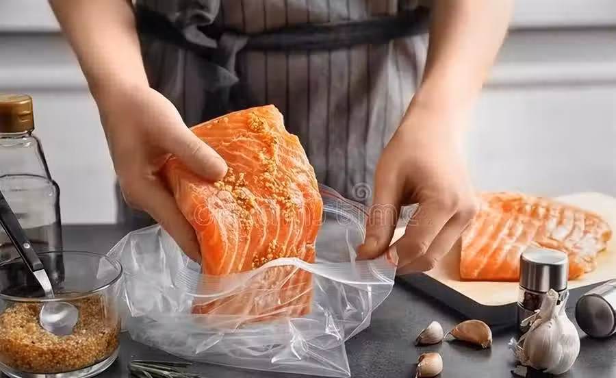 有一些食材需要冷凍,有時我們會將食物和塑料袋一起放入冷凍室中,時間一長,食物可能就和塑料袋粘在一起,而冷凍之後塑料袋會變得很脆。