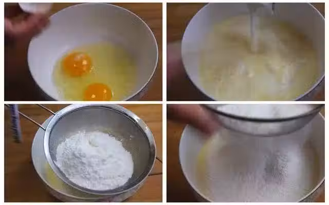 4、把攪拌好的麵糊再攪拌一下,用漏斗過濾到模具里,過濾出大的氣泡和顆粒。
