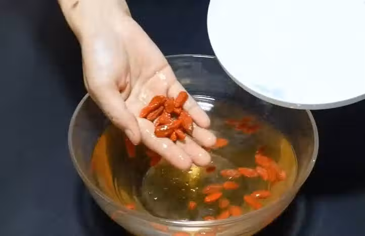 大家會發現水完全的變渾濁了,甚至有一些灰塵都已經浮了出來。因為食用堿可以有效地吸附這些灰塵,並且食鹽還可以幫助枸杞殺菌消毒。這樣清洗出來的枸杞吃起來就比較衛生了。