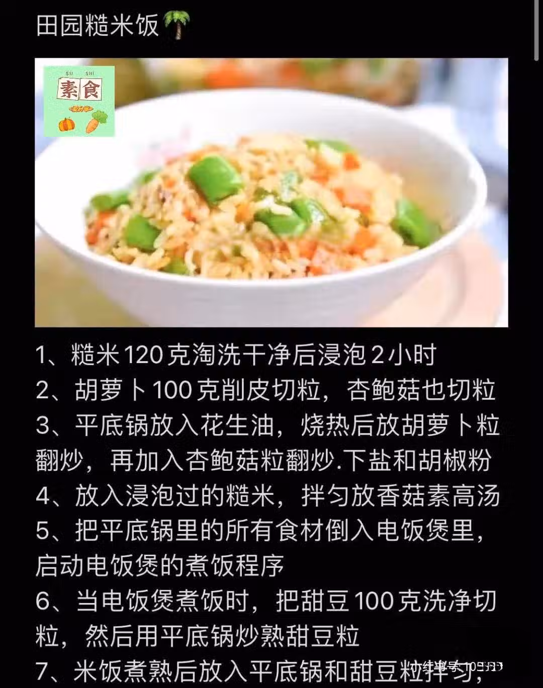 1、糙米120克淘洗乾淨後浸泡2小時
