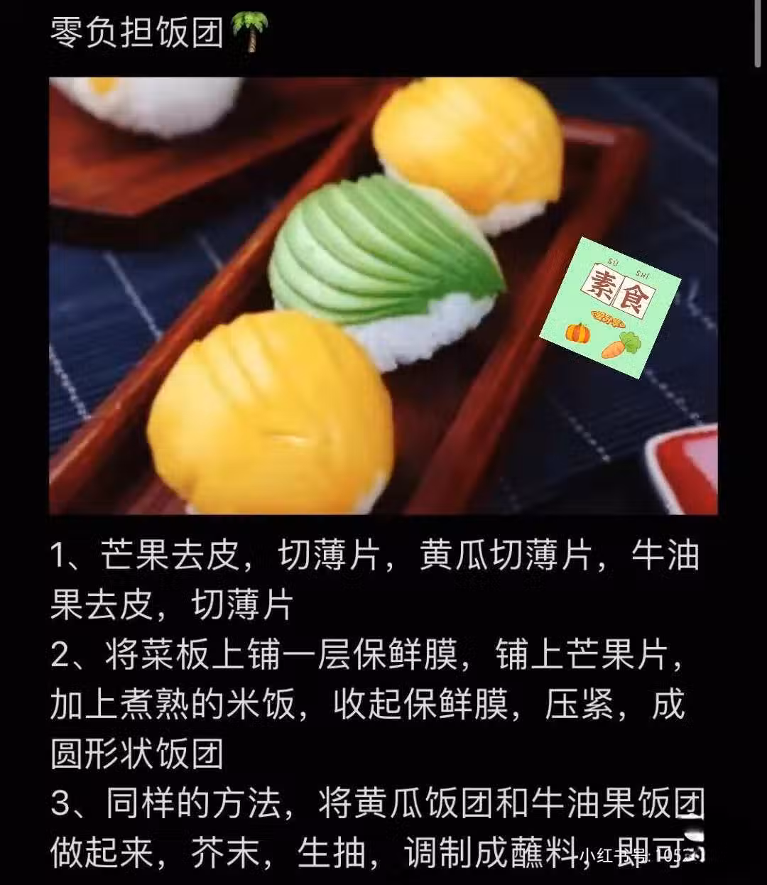 3、同樣的方法,將黃瓜飯糰和牛油果飯