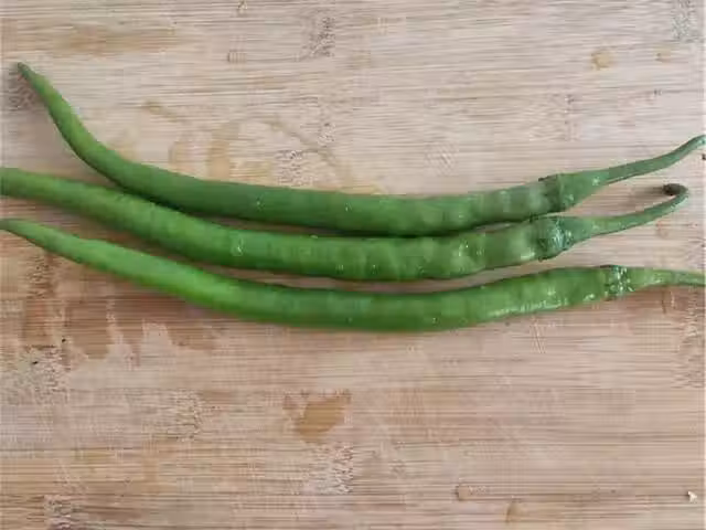 1.準備青線椒3-4根,用清水洗凈,去掉辣椒蒂,如果有不喜歡吃辣的,也可以換成甜椒搭配。
