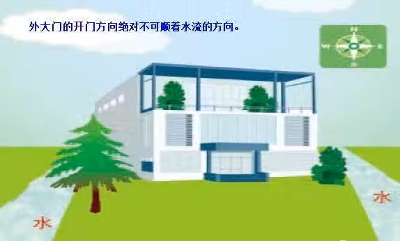 外大門的開門方向絕對不可順著水流的方向,否則家裡的好運都會順水流走,不利於家運和財運,此乃自然風水之大忌。