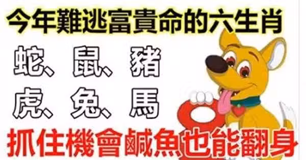今年不走黴運,橫財天天發,難逃富貴命的六生肖