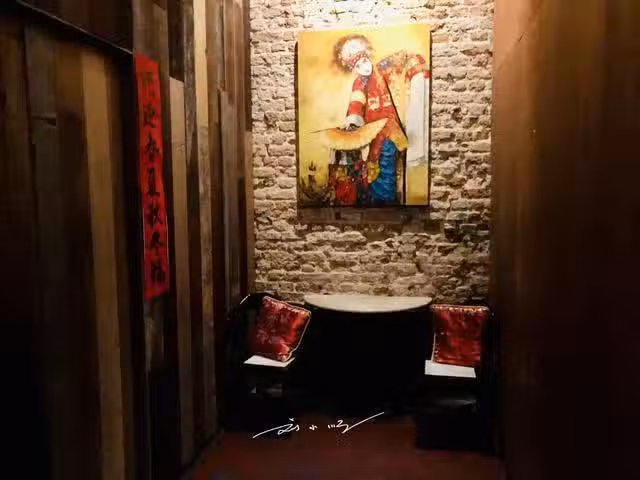 朋友一臉「神秘兮兮」,徑直推開了大門走進去。而從大門進來之後,裡面依然不是酒吧啊,這裡看起來像是一個小小的玄關,牆上掛著裝飾畫,內門上還貼著春聯。 我覺得朋友一定是搞錯了,這就是當地的一戶人家,否則怎麼可能有一家酒吧是這樣營業的?連一個字的招牌都沒有。