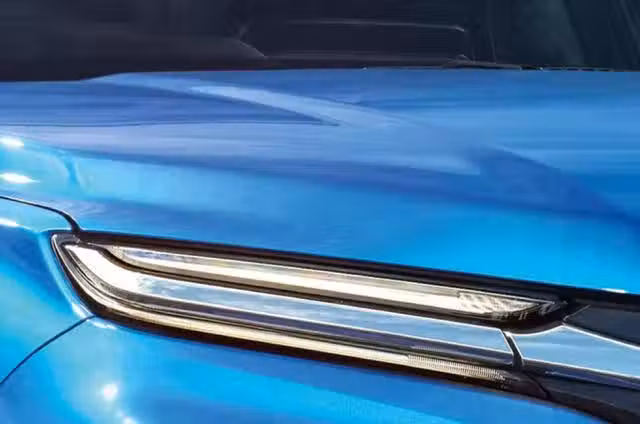 前端的特點是上部採用「水晶亞克力格柵」和分體式大燈,並採用鍍鉻裝飾條將LED日間行車燈和封閉式格柵一分為二,如上圖所示。