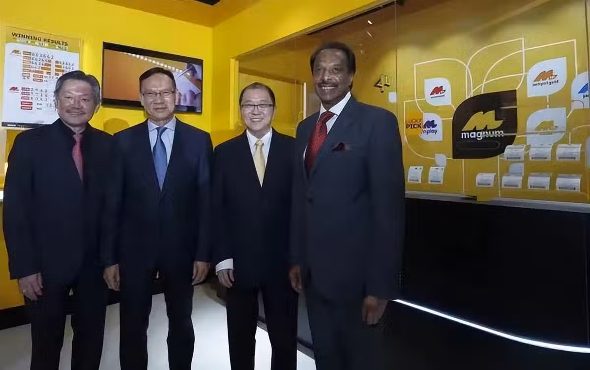 馬來西亞萬能集團掌門人劉錦坤(左2) 在馬來西亞,有四大博彩業大亨,他們分別是雲頂集團的林國泰,金界控股的老闆曾立強、成功集團的陳志遠,以及萬能彩票的老闆劉錦坤。 前不久,2022福布斯馬來西亞富豪榜出爐,港股「金界控股」掌門人、在柬埔寨發展博彩業的曾立強,身家27億美元,為大馬第七大富豪。已故的「大馬賭王」林梧桐之子、雲頂集團二代掌門人林國泰,上榜身家23.5億美元,為大馬第九大富豪。 相比之下,萬能彩票的老闆劉錦坤和成功集團老闆、香港明星劉德華妻子朱麗倩的舅舅陳志遠,由於二人的家族產業已經多元化發展,不像曾立強、林國泰兩位「賭王」以博彩業為主,也就成了被忽視的馬來西亞賭業大亨。