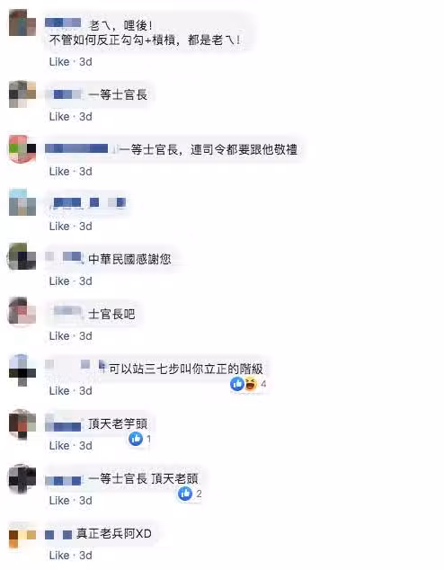 這則貼文很快就吸引了網友們圍觀、熱議,大家都紛紛留言驚嘆「三粗三細是特級士官長,二戰過後的職稱」、「是將軍看到都要趴下的那種!」、「封頂的上士,也就是一等士官長」、「這已經是超乎想像的等級了,趴數極高」、「可以站三七步叫你立正的階級」、「這些都是真英雄」。