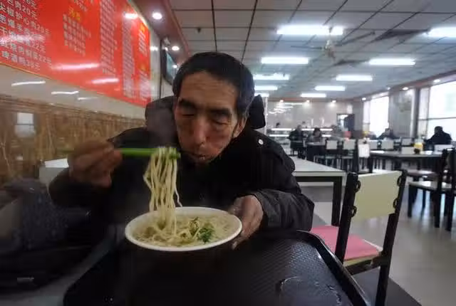 趙永久收入不高,過得很苦。一碗最簡單的乾麵,就是他的午飯。這碗麵淡而無味,他卻吃得很香。在他看來,吃得好不好並不重要,能吃飽就行了,因為他下午還要繼續工作。