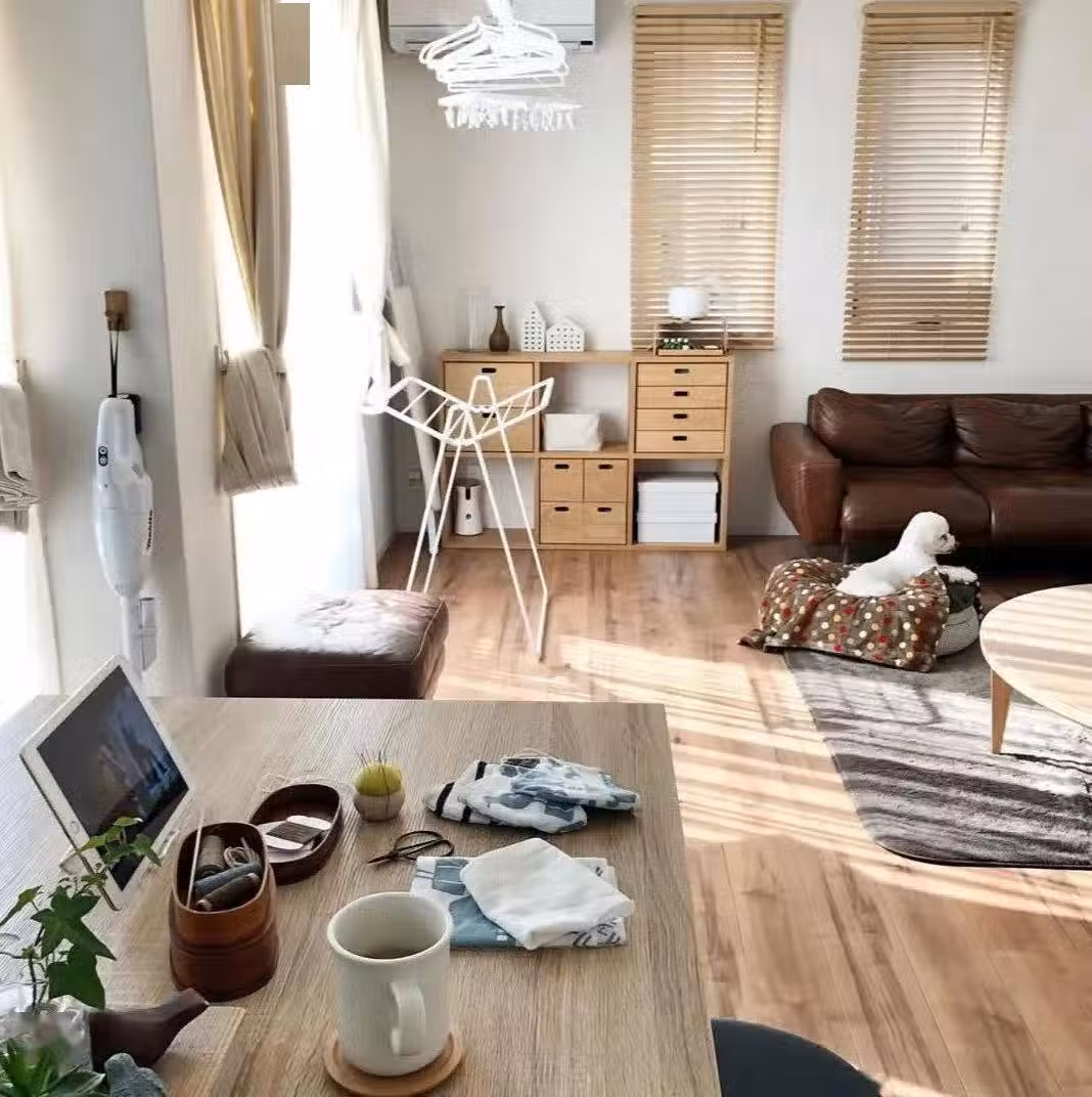 還可以在客廳的一角加上小書桌,讓客廳兼具工作室功能。一個人在辦公,另一人在喝茶看書,各自做喜歡的事情,互不影響。