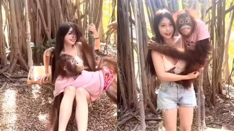 百萬辣模遊泰國!突遭「猩猩x胸」嚇傻尖叫 45秒失控片曝光