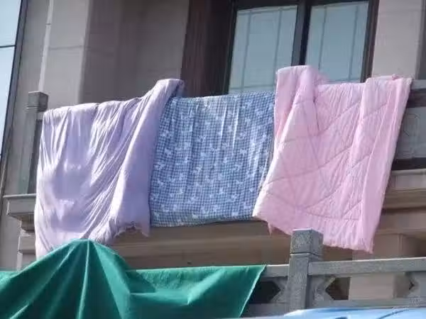 自從那天後,鄰居的被單被子再也不掛下來,被子她就平鋪著,被單這些都是對摺後曬,我家的陽台又重見天日了。