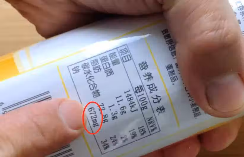 看一下它的營養成分表,不建議選擇鈉含量超過500的面條,像這種900的,真的就不建議了哈。