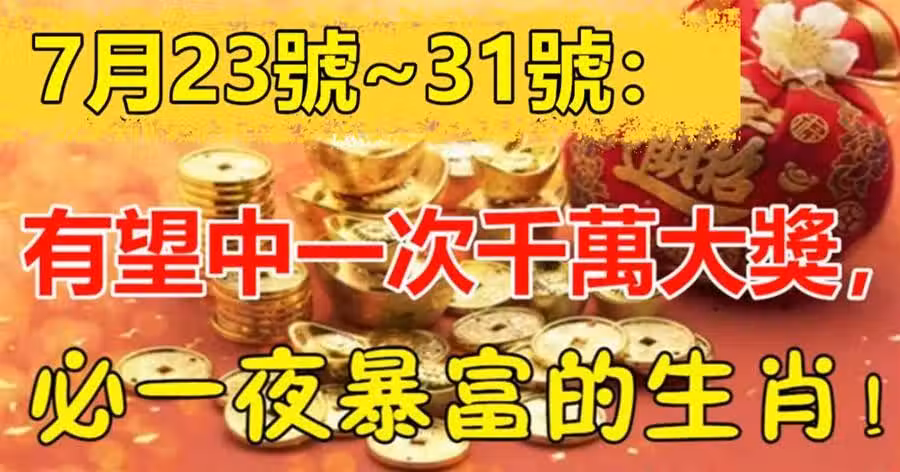 7月23號~31號:有望中一次千萬大獎,必一夜暴富的生肖