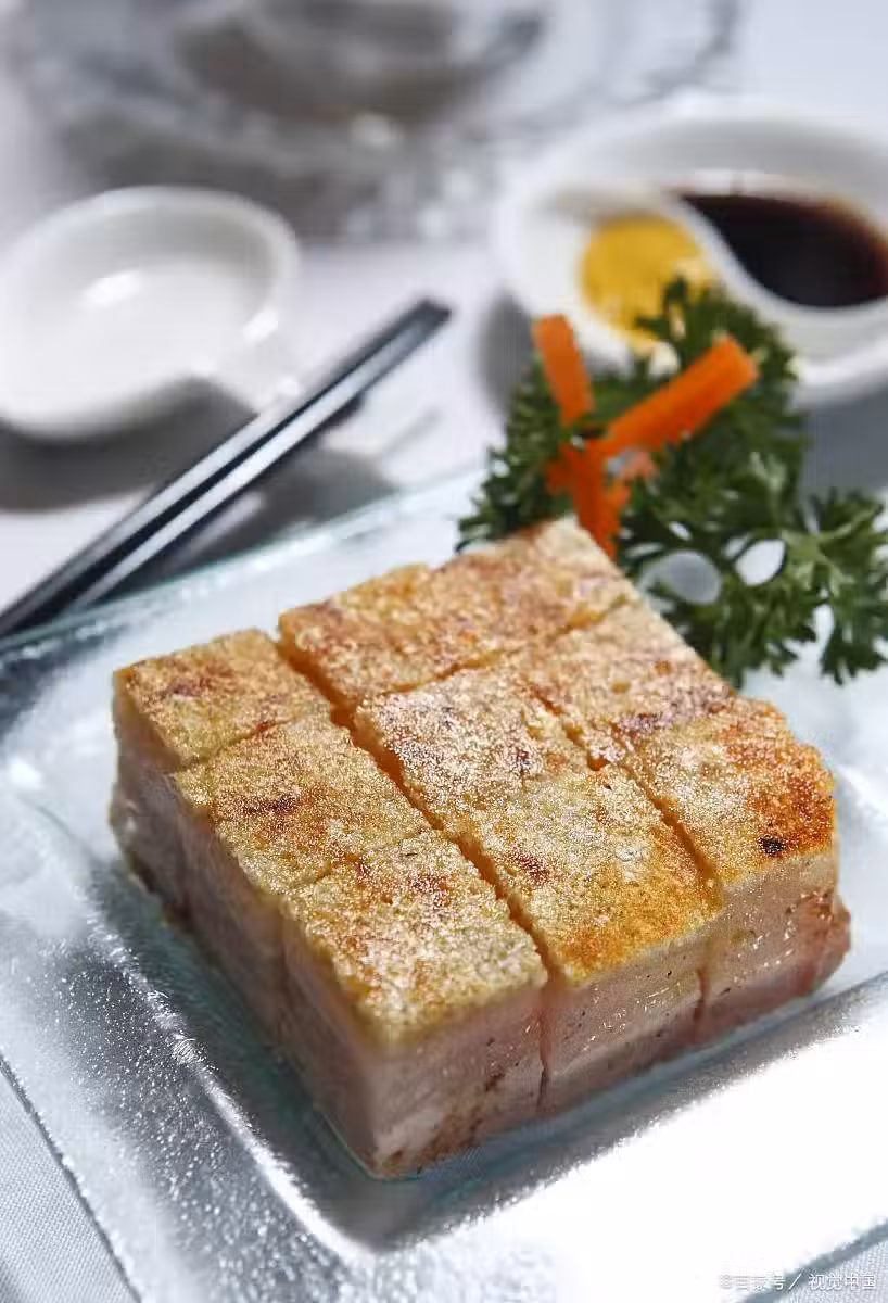 脆皮五花肉是一道色香味俱全的粵菜,外焦里嫩不油膩、色澤金黃、香酥爽脆,口味濃香等特點,有傳統特色美食之稱,屬於粵菜中的一道名菜。一般在廣東、澳門、香港大排檔及飯店茶餐廳、燒臘飯店等,都有這道經典脆皮五花肉的身影。