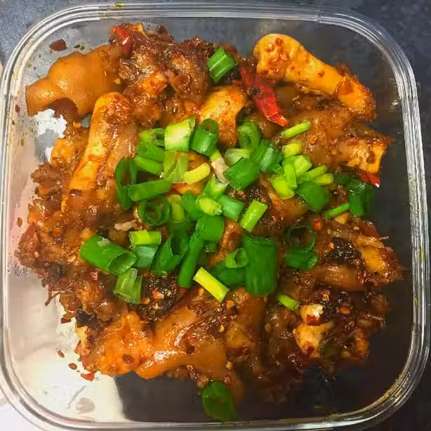 用料:豬蹄2隻、蒜苗2根、姜1塊、八角2個、老抽1小勺、大蔥1根、白醋1大勺、白酒2小勺、豆豉1小勺、郫縣豆瓣醬2小勺、白糖2小勺、植物油適量