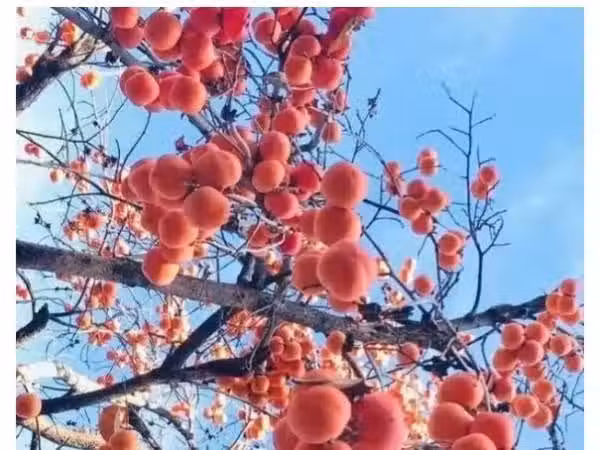 在農村,柿子樹也非常常見,許多人家在院子裡種上一棵柿子樹。