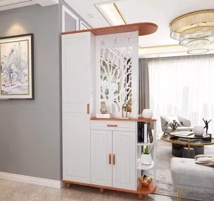 大門和客廳的中間,最好要有玄關,如果沒有玄關,也要設計矮櫃、收納櫃來實現遮擋效果。