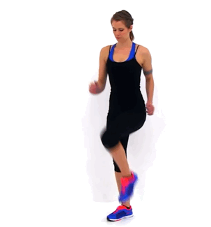 保持站姿,身體放鬆 屈膝抬腿,使腳抬離地面約 40 厘米 然後慢慢將腳向下跺,使全身有輕微的震動感 堅持 3~5 分鐘