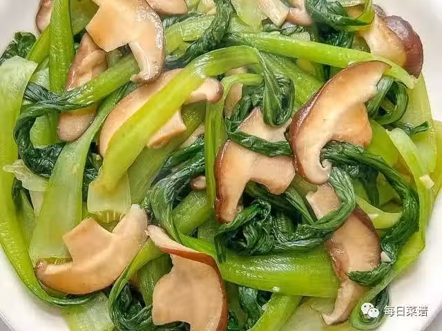 2、起鍋燒油,油熱後放入蒜末爆香,再放入香菇翻炒,炒軟後倒入油菜翻炒均勻。