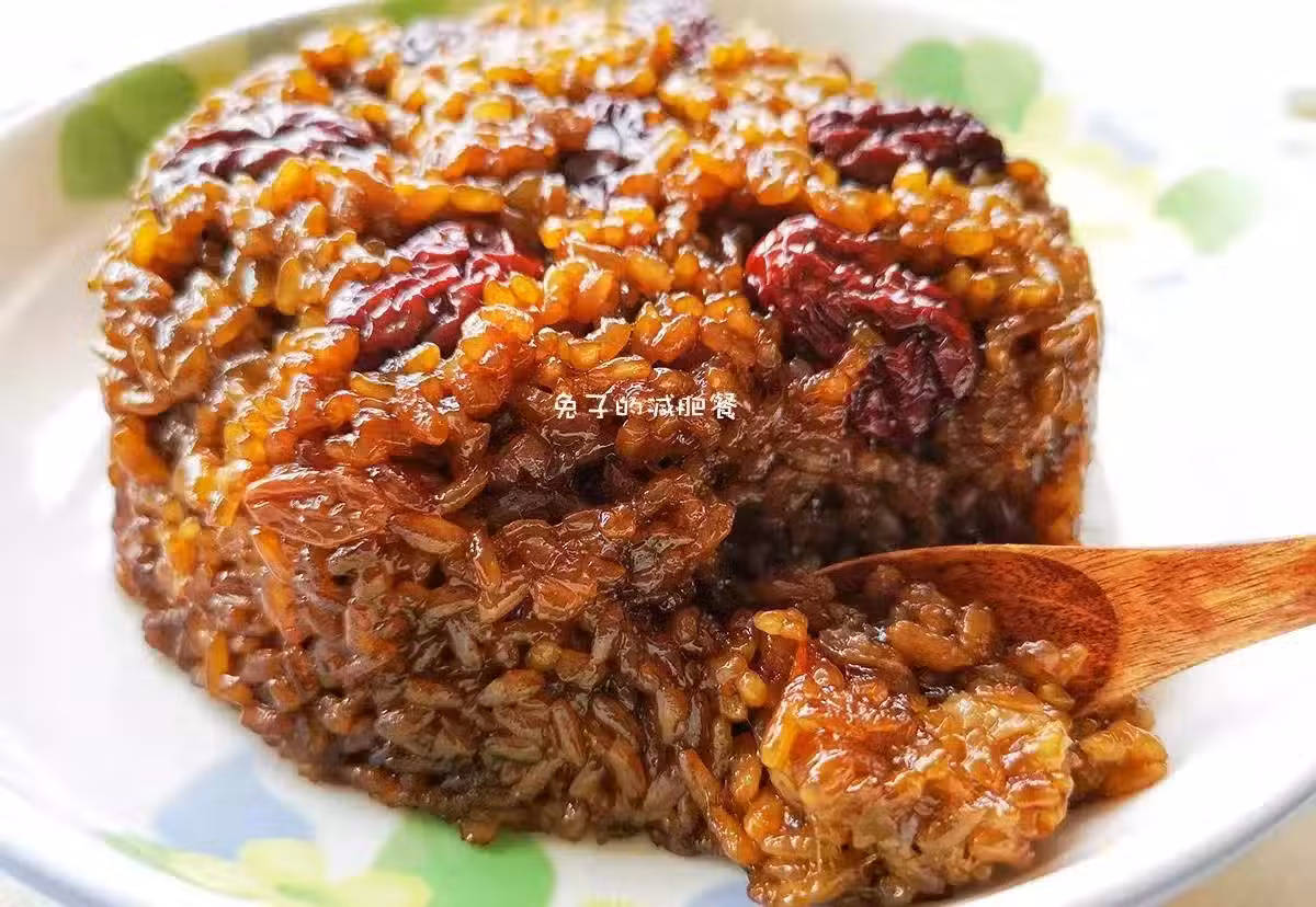 分享菜譜:《紅糖糯米飯》詳細製作步驟如下所需食材:糯米400克、紅糖4大勺、紅棗適量、葡萄乾、枸杞
