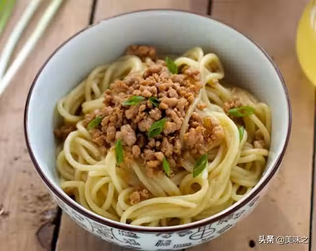 7、面 肉末 少許蔥油 蔥綠 拌勻即可享用。