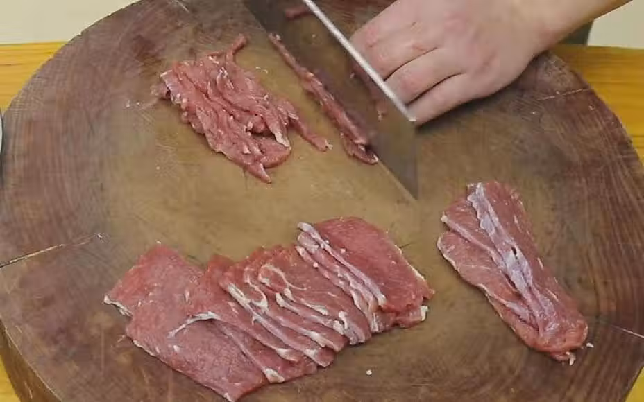 2、牛肉加鹽、雞粉、胡椒粉、蠔油、生抽,事先準備好的蔥薑料酒水也倒進去一些,順著一個方向快速攪打,讓牛肉絲吸收料汁以及蔥薑水,增加滑嫩感。然後磕進去一個雞蛋清繼續攪拌,再捏進去一小撮澱粉鎖住水分。最後用油封一下,放一邊腌制十分鐘。