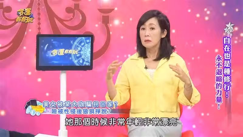 資深媒體人粘嫦鈺在《命運好好玩》透露有一位接到這位美女朋友打來的電話,洩身分「她其實有一陣子也是出來上節目,而且她還很知名的某公益團體的領導這樣」,朋友回憶,事情發生很久以前去參加活動的時候,遭到一位大咖騙拐回家。