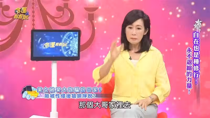粘嫦鈺指出,「這個大哥是橫跨電影、綜藝主持、唱片三棲的」,當時本來說活動結束後是要送女生回家,結果車變成往大哥家的方向去開,大哥一進門就露出狼性,開始對女生上下其手,「真的是摔在床鋪上這樣」,粘嫦鈺好友當場嚇傻,在床上努力掙脫,好在有成功脫身。