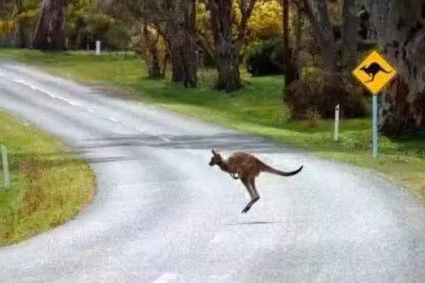 澳大利亞的馬路:澳大利亞是一個風景優美的國家,這裡的生物多樣性很足,在公路上開車時不時就回有袋鼠或者小生物跑出來,所以在這裡開車一定要減速慢行,另一方面說,這是一個被袋鼠包圍的可愛國家。