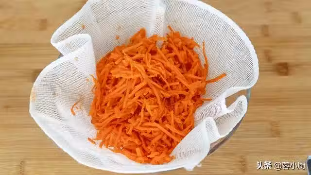 2、這個汁就用來和面,胡蘿蔔絲先放一旁備用;