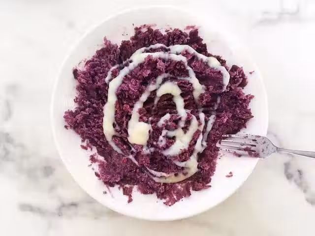 3、把紫薯泥搓成一個大的球狀即可。不喜歡吃紫薯,可以把紫薯換成紅薯,芋頭,或者各種水果,水果需要煮成果醬。