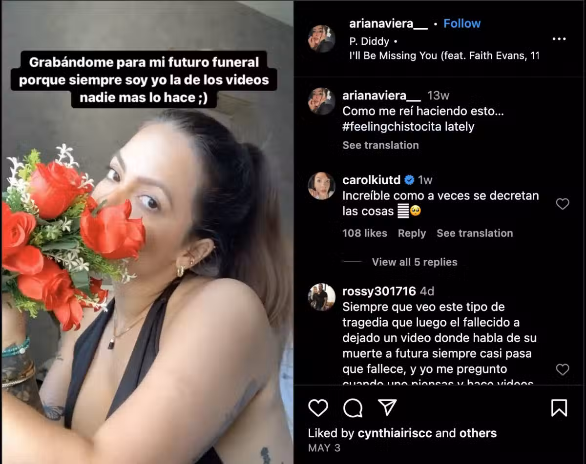 ▲亞莉安娜(Ariana Viera)曾在IG上傳,為自己葬禮拍攝的影片。(翻攝自arianaviera__ IG)