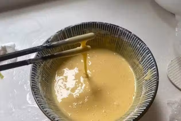 技巧:調麵糊時,不能只用麵粉、雞蛋,還需要添加澱粉,最好是紅薯澱粉,這樣口感才酥脆。別忘了加花椒碎,增加顆粒感,口感更上一層樓。麵糊的稀稠度也很重要,太稠了口感發硬,太稀了口感發軟,能掛在手上,落下時形成連續、不斷的線條就行了。